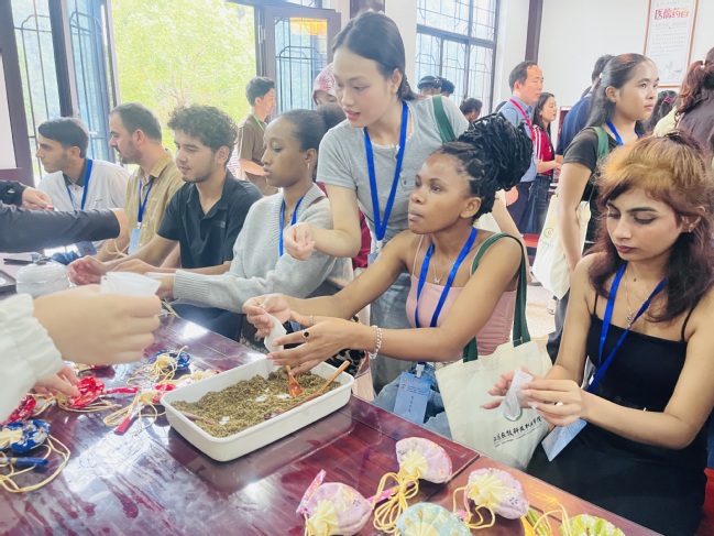 我校留学生体验中药香囊制作