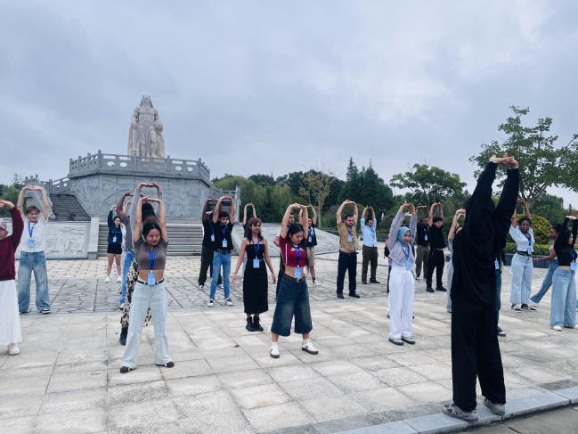 留学生们学习八段锦