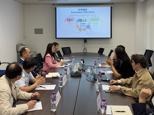 在香港中文大学,代表团与香港中文大学教育学院院长范息涛教授及其团队进行座谈。范院长及其团队分享了他们在课程与教学、教育行政与政策、教育心理学等方面的研究成果和实践经验,张茂林副校长介绍了学校的发展历程、办学特色等情况,并重点介绍了学校在高等融合教育方面的相关工作。双方还就特殊教育和音乐教育领域的合作进行了深入探讨,表示将进一步推动教师研修、学生交流领域合作项目的落地。代表团还学习了香港中文大学在智能图书管理系统的建设、无障碍设施建设,以及实验室等场所资产使用和管理方面的相关经验。