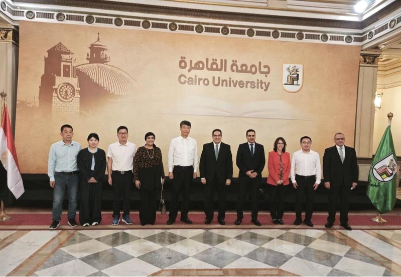 在开罗大学,代表团与校长穆罕默德·萨米·阿德尔萨达克(Mohamed S.Abdelsadek)教授、分管研究生学习与研究事务副校长马哈茂德·艾尔·赛义德(Mahmoud EI-Said)教授及相关学院、部门负责人等座谈交流。穆罕默德·萨米·阿德尔萨达克(Mohamed S.Abdelsadek)校长详细介绍了开罗大学对学生成长成才的支持体系,希望尽快与我校在特殊教育领域启动合作,着重推进“双学位”和研究生联合培养项目。黄书记表示,期待双方未来夯实特殊教育与康复教育领域的合作基础,树立双边教育合作新标杆。双方就硕士联合培养、学生双向交流、教师互访及共建国际联合实验室等具体事宜进一步达成了合作共识。