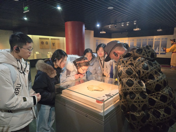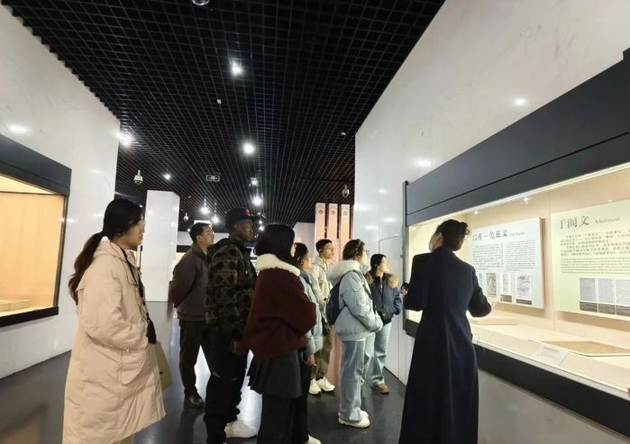 参观过程中,中外学生围绕甲骨文的造字智慧、青铜器铭文的文化寓意以及汉字演变的历史逻辑展开交流讨论。国际留学生纷纷表示,汉字不仅是一种文字系统,更承载着丰富的历史记忆与文化价值。