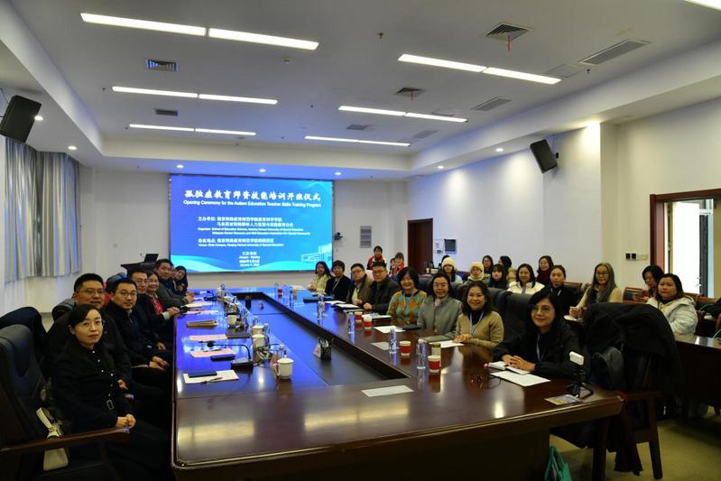 教育是共建“一带一路”的重要组成部分和工作领域,也是推动构建人类命运共同体的重要支撑和引领。1月4日上午,由我校教育科学学院和马来西亚特殊群体人力资源与技能教育公会(Malaysia Human Resource and Skill Education Association For Special Community)联合举办的孤独症教育师资技能培训班在南京特师栖霞校区开班。学校党委常委、副校长吴彬江,马来西亚特殊群体人力资源与技能教育公会会长陈奕夫,对外合作与交流处、教育科学学院有关负责同志,以及培训班执教教师和全体学员参加开班仪式。